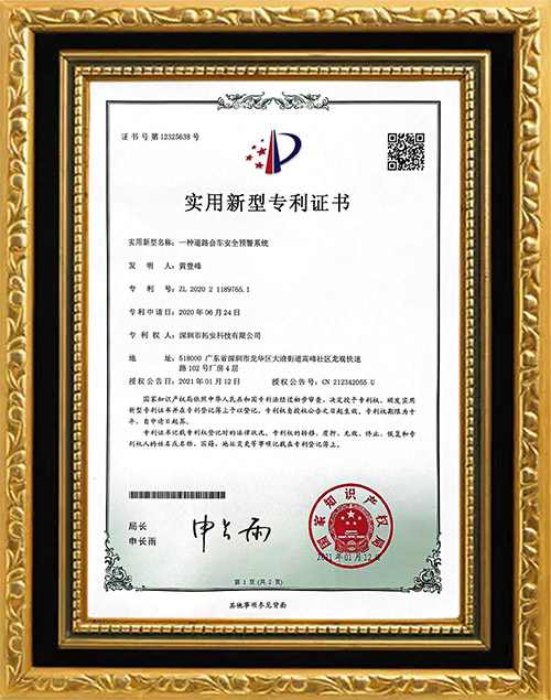 平交路口預(yù)警裝置專利證書