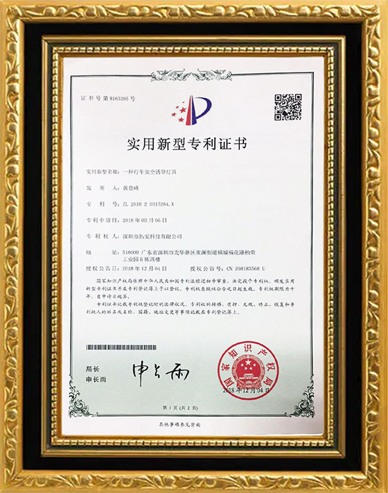 誘導(dǎo)霧燈專利證書