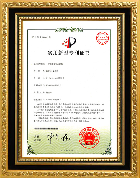 太陽能道釘專利證書