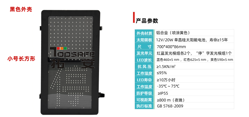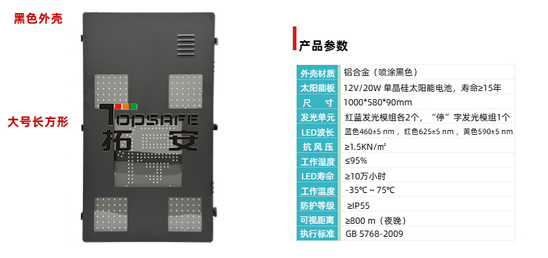 2、分體式快拆結(jié)構(gòu)設(shè)計(jì),紅藍(lán)雙色警示模組(≥150×150mm)與停字大屏(≥320×320mm)獨(dú)立控制;