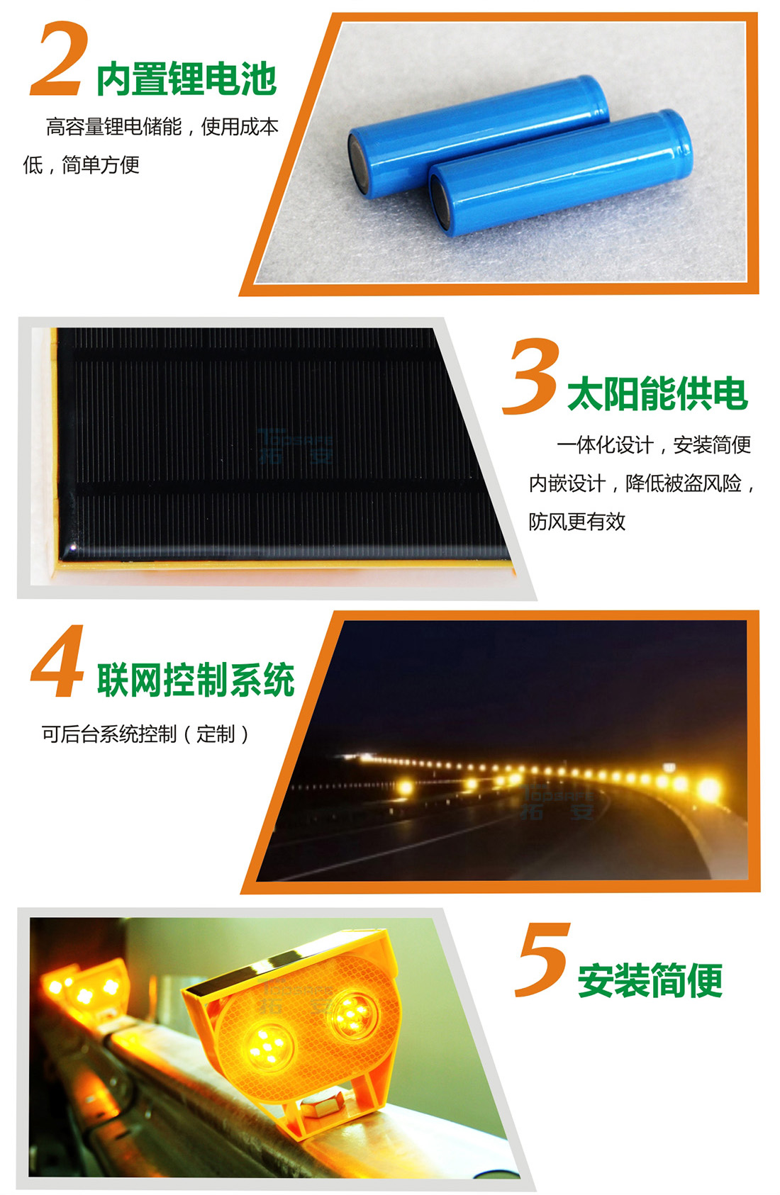(5)智能誘導(dǎo)警示燈正面采用超高亮反光膜相結(jié)合,在燈光熄滅情況下,依舊可以通過車輛主動燈光反射體現(xiàn)道路輪廓。