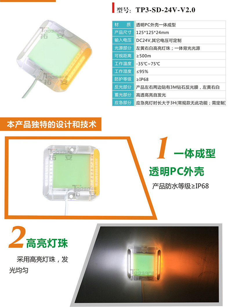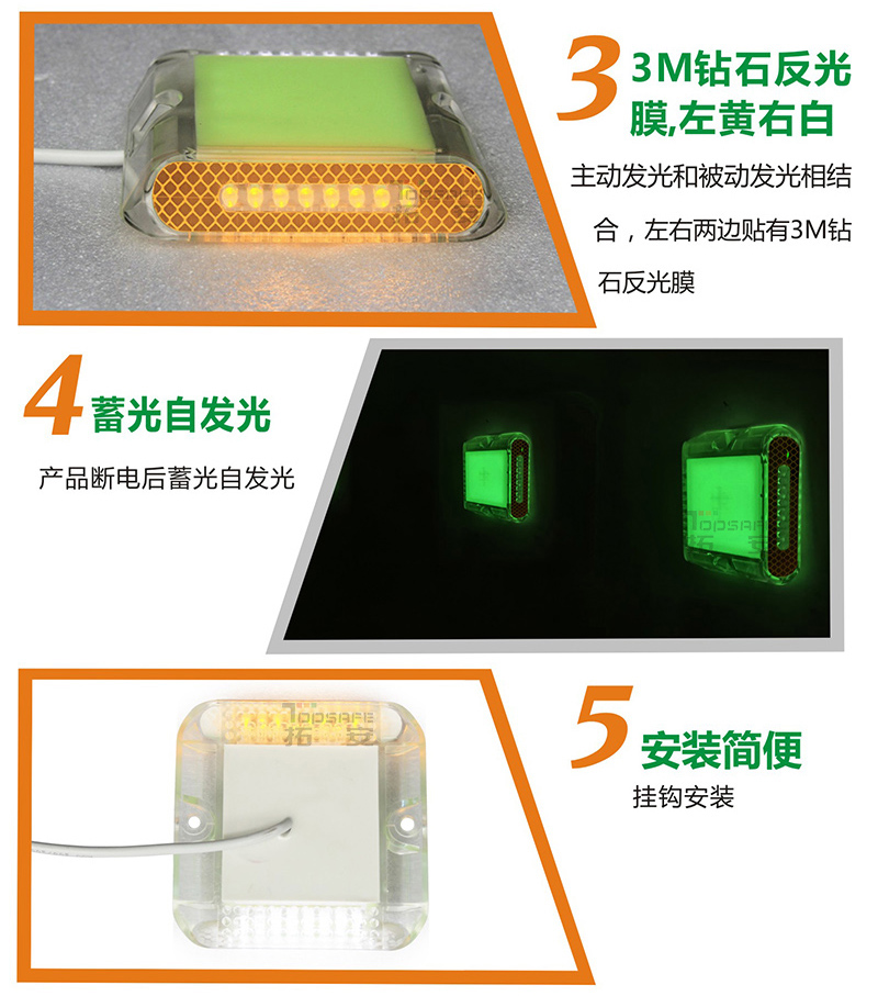 常規(guī)隧道誘導(dǎo)燈只有單純的LED發(fā)光或其他完全被動反光功能,此類產(chǎn)品在隧道突然斷電時,無法發(fā)揮指引作用或作用不明顯,而隧道三光誘導(dǎo)燈集主動發(fā)光、反光、蓄光為一體,功能更齊全。當(dāng)隧道有電時,LED主動發(fā)光,熒光部分蓄光,反光膜反光;當(dāng)隧道突然斷電時,蓄光部分自發(fā)光,反光膜反光,疏散標(biāo)志仍能正常工作,引導(dǎo)車輛和行人緊急疏散